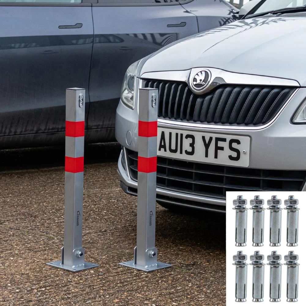 Bollard: 65cm x 5cm x 5cm. Base: 13cm x 15cm. - PRACTICAL – Keeps your parking spaces secure with Hausens parking barrier post, ideal for use both at home and within commercial spaces, keeping parking spaces, driveways and garages secure.