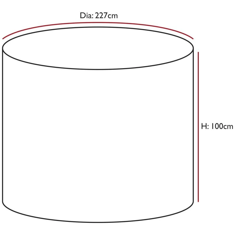 - SPECIFICATIONS – Size: D: 227cm x H: 100cm. Colour: Black. Material: 600D PVC backed woven polyester. Weight: 1.1kg