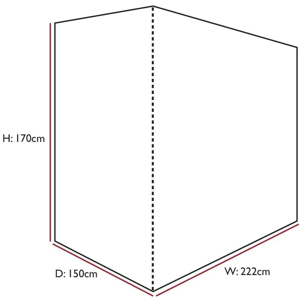 - SPECIFICATIONS – Size: W: 222cm x H: 170cm x D: 150cm. Colour: Black. Material: PVC backed woven polyester. Weight: 5.6kg