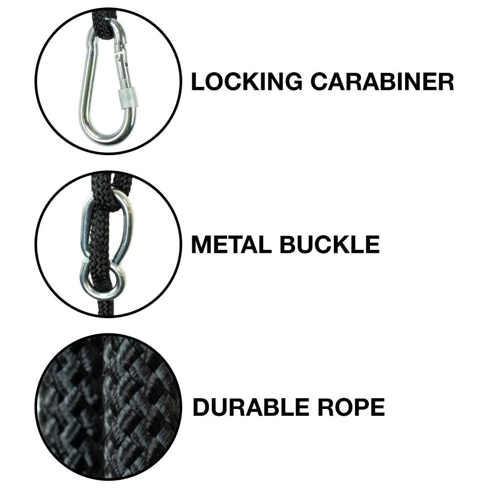 - 4 WAYS TO INSTALL – Attach the carabiners to a pre-existing swing set up; Tie the ropes directly onto a strong tree; Tie the straps around a pre-existing metal frame; Or the rawl bolts can be drilled into a ceiling and the carabiners attached
