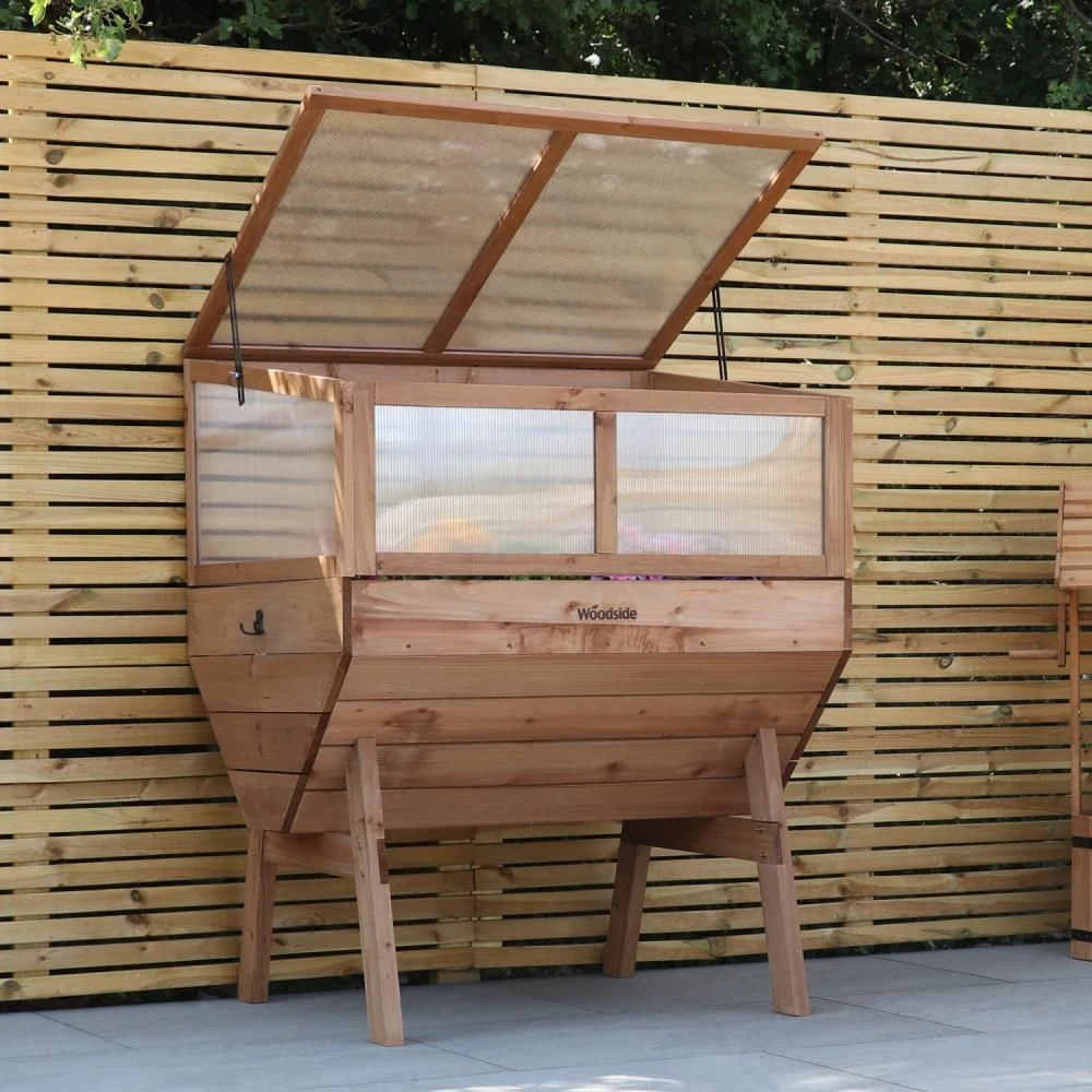 Woodside Raised Wooden Garden Planter + Cold Frame/Growhouse Plant & Veg Box, Large 150cm